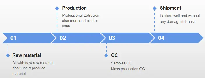 ایل ای ڈی ایلومینیم پروفائل اور ایل ای ڈی پلاسٹک پروفائل پروفیشنل کارخانہ دار کے طور پر ، جے ای ہمیشہ ایلومینیم اور پلاسٹک کے خام مال سے لے کر اخراج کی تیاری کی لائن تک ، نمونے کے کوالٹی کنٹرول سے لے کر بڑے پیمانے پر پروڈکشن کنٹرول تک ، مضبوط کامل پیکیج سے لے کر پورے دل کی خدمت تک توجہ مرکوز کرتے ہیں۔
